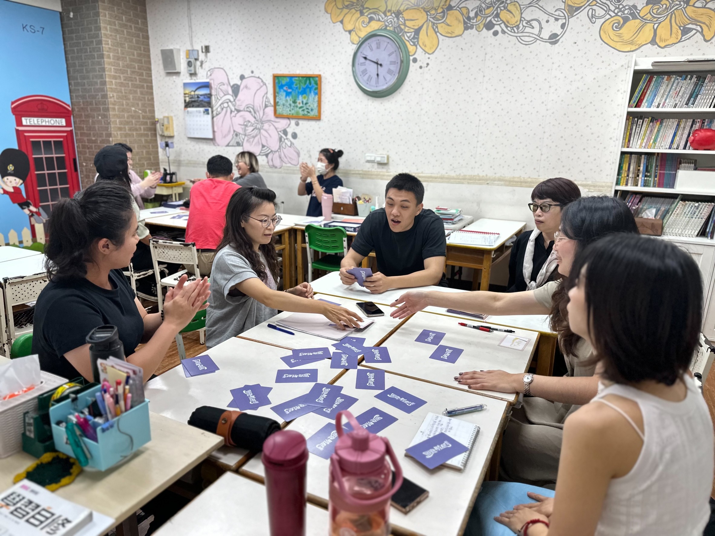 第三種,組別提早完成能做甚麼,麗芳老師分享她的實際帶法,把聯想圖卡蓋住分散放在桌面上,每個人抽一張,然後要介紹這張圖卡並讓大家來猜,猜到的能獲得那張圖卡,全部玩完再看誰圖卡多誰就獲勝,關鍵在於發問者所說出的問題,比方說,圖卡是可樂,我能說「它是一種氣泡飲料」也能說「它是一種棕色飲料」,這款遊戲也很適合用在暖場活動,搭配上時間限制/音樂,大家也可以在家玩玩看。